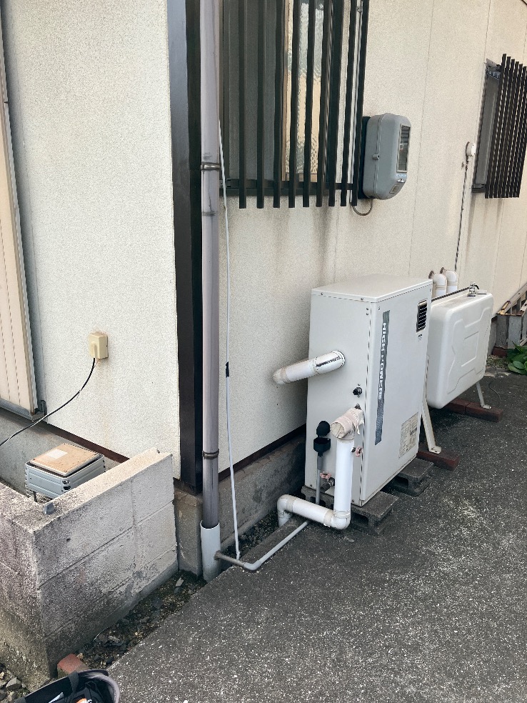 今日は、石油給湯器からガス給湯器へのお取替工事にお伺いしました!