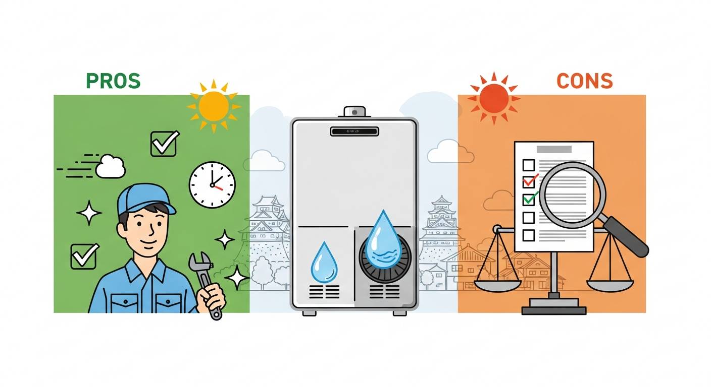 そこでこの記事では、福山市でエコキュートの交換を検討している方に向けて、即日工事のメリットとデメリットを包み隠さず完全網羅してお伝えします!さらに、悪徳業者に引っかからないための賢い選び方や、急いでも損をしないための見極めポイントまで徹底解説しました。