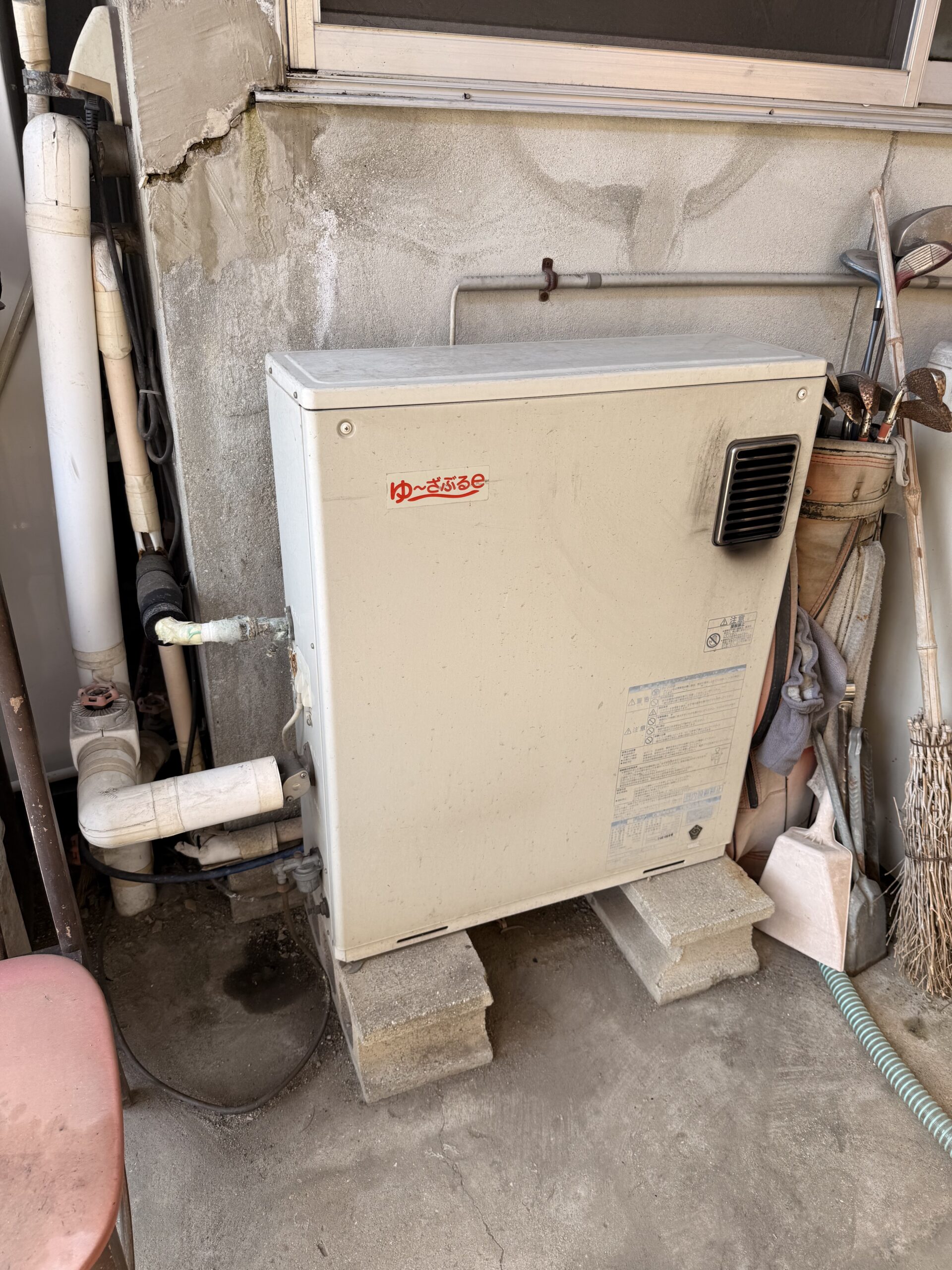 今日は石油給湯器からガス給湯器への取替です